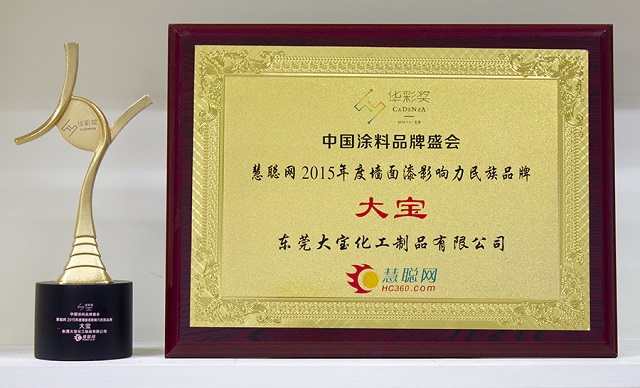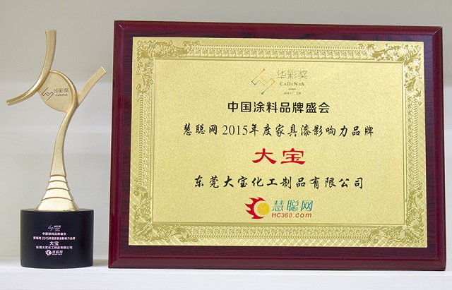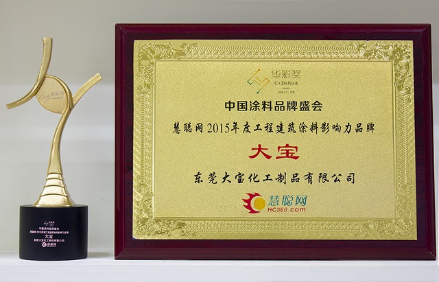 歷經(jīng)數(shù)月激烈的票選角逐,作為綠色涂料首選品牌的大寶漆憑借著過(guò)硬的產(chǎn)品質(zhì)量及雄厚的銷售實(shí)力,從眾多涂料生產(chǎn)品牌中脫穎而出,一舉獲得了“2015年度工程涂料影響力品牌”、“2015年度家具漆影響力品牌”、“2015年度墻面漆影響力民族品牌”三項(xiàng)殊榮。