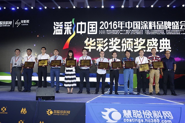 2016年7月7日,由慧聰主辦的“溢彩中國(guó)”——2016年中國(guó)涂料品牌盛會(huì)暨“華彩獎(jiǎng)”(第十屆)影響力品牌評(píng)選頒獎(jiǎng)盛典在北京釣魚臺(tái)國(guó)賓館隆重舉行。來(lái)自全國(guó)各地涂料企業(yè)代表、渠道代理商、家具企業(yè)代表、行業(yè)專家、以及眾多新聞媒體記者共500余人,共同參與了“溢彩中國(guó)”2016年中國(guó)涂料品牌盛會(huì)暨“華彩獎(jiǎng)”影響力品牌評(píng)選頒獎(jiǎng)盛典。
