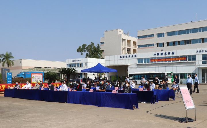 鎮(zhèn)指揮部在大寶化工成立現(xiàn)場(chǎng)指揮部,鎮(zhèn)人大主席吳美嬌,鎮(zhèn)委委員、公安分局局長(zhǎng)楊方煜分別擔(dān)任現(xiàn)場(chǎng)指揮部總指揮和副總指揮,指揮現(xiàn)場(chǎng)各項(xiàng)處置工作。最后,在鎮(zhèn)疾控中心、衛(wèi)健局等相關(guān)職能部門的共同努力及大寶化工的積極配合下,經(jīng)“疫情發(fā)現(xiàn)、啟動(dòng)預(yù)案、處置工作”等環(huán)節(jié),本次應(yīng)急演練順利完成。