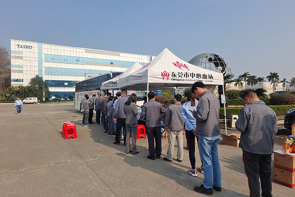 上午9時,東莞市血液中心獻血車準時到來,在醫務人員的指導下,員工認真填寫獻血登記表,測血壓、抽血化驗等前期準備工作,經血液檢驗合格后開始無償獻血,整個獻血過程有條不紊、秩序井然。