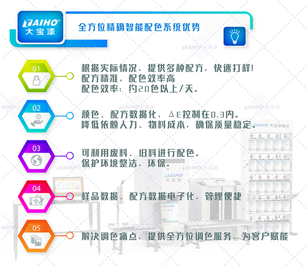 大寶漆將根據需求配對、從小批次到大批量生產為個性化定制家居行業需要,更快速、更高效、更準確的調色系統。