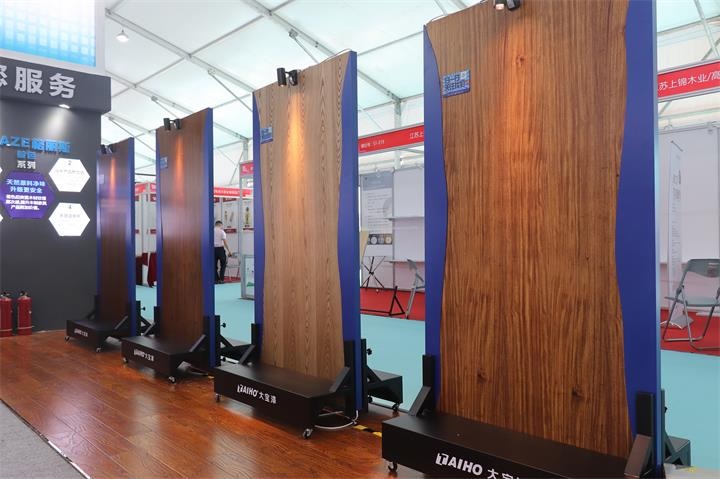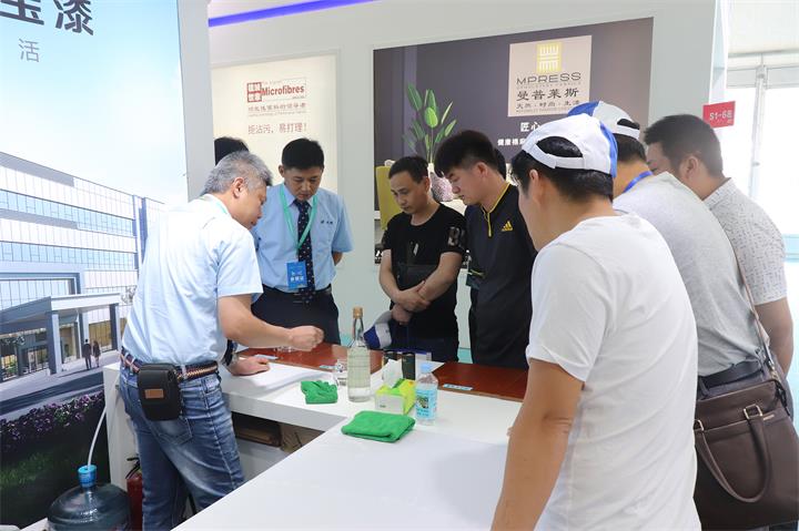 大寶漆作為國家高新技術企業,緊扣“涂裝黑科技”的主題,在成都家具展重點展出了公司最近幾年研發突破的家具漆新工藝,包括:淺色科技木皮耐黃變高硬度系列、1度左右的PU全啞面漆系列、水性雙組份底面著色耐高溫系列、UV底面著色系列和格麗斯著色層次感強系列等,受到了參展的家具廠、涂料同行的關注。尤其是淺色科技木皮耐黃變高硬度系列和1度左右的PU面漆全啞涂裝系列,吸引了不少家具廠企業代表駐足觀看,了解產品信息,紛紛表達了合作意愿。