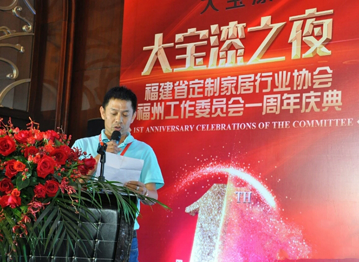 在與會人員的掌聲中,福州超嘉鎰貿(mào)易公司蔡富健總經(jīng)理登臺致辭。蔡總首先對福建省定制家居行業(yè)協(xié)會福州工作委員會成立一周年表示衷心的祝賀!同時他對福州區(qū)域定制家居發(fā)展前景中的機遇與挑戰(zhàn),分享了自己獨特的見解。并結(jié)合大寶漆不斷創(chuàng)新工藝與優(yōu)化產(chǎn)品來適應(yīng)市場變化的做法,向在場嘉賓傳達大寶漆“品質(zhì)安定化,產(chǎn)品特色化”的方針。最后,他鄭重承諾,作為家居產(chǎn)業(yè)鏈中的涂料涂裝供應(yīng)商,將繼續(xù)為家居企業(yè)客戶提供優(yōu)異的涂料產(chǎn)品和專業(yè)的工程服務(wù)。