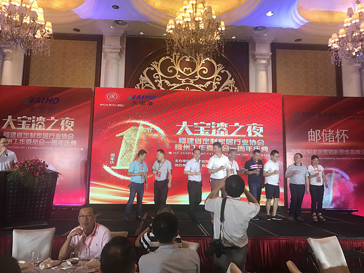 8月9日,由東莞大寶、福州大寶聯(lián)合冠名贊助的福建省定制家居行業(yè)協(xié)會福州工作委員會成立一周年慶典大會,在福州融僑水鄉(xiāng)酒店盛大舉行。整個會場喜氣洋洋、高朋滿座,來自全國各地的行業(yè)專家、福建省定制家居行業(yè)協(xié)會全體理事會成員、福州工作委員會全體會員等共計三百多人,共同見證了這一輝煌時刻。