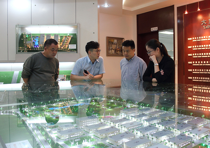 到訪領導一行還參觀了東莞大寶化工現代化的廠房設備、智能化涂裝線、一流的中央實驗室和展示家具漆產品完美施工效果的色板中心等地,增進了彼此的了解和進一步合作的信心。針對“油改水”問題,工作人員向參訪人員介紹了大寶漆水性漆的工藝和質量控制情況,詳細回答了馬總、李總一行對智能涂裝線的提問。考察人員對大寶漆先進的生產管理和環保理念給予了高度評價。