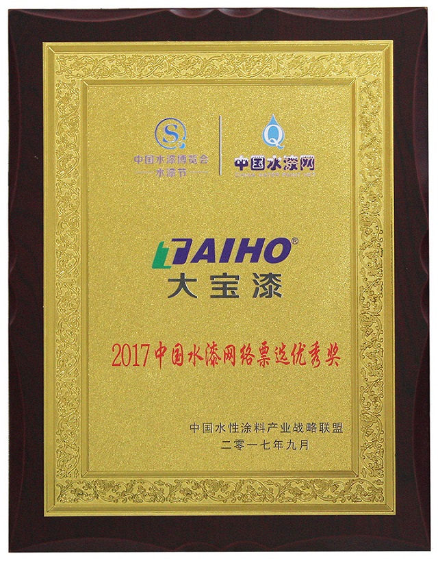此次大寶漆在水博會(huì)中獲得了“2017中國水漆網(wǎng)絡(luò)票選優(yōu)選獎(jiǎng)”,這是消費(fèi)者對大寶水性漆及倡導(dǎo)的環(huán)保涂裝方案的充分肯定,同時(shí)也是對大寶漆在推動(dòng)環(huán)保水性涂料發(fā)展方面的鞭策。