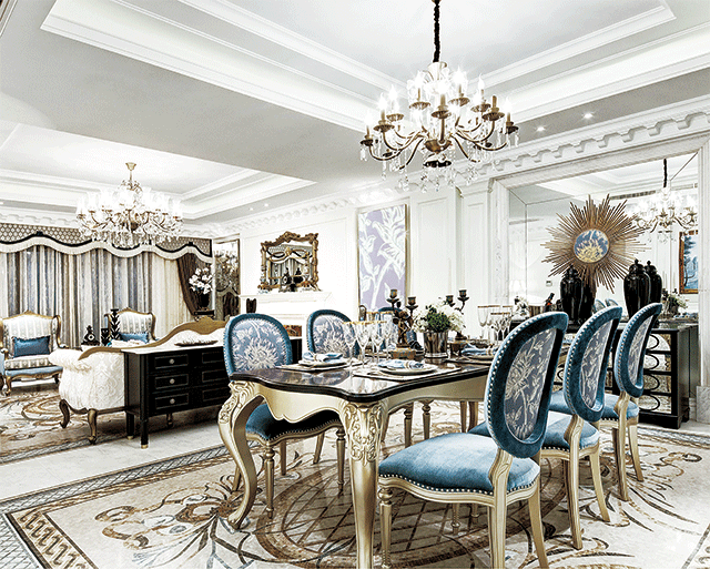 法式風格,即指法蘭西國家的建筑和家具風格,主要包括法式巴洛克風格、洛可可風格、新古典風格、帝政風格等,是歐洲家具和建筑文化的頂峰。法式建筑十分推崇優(yōu)雅、高貴和浪漫,它是一種基 于對理想情景的考慮,追求建筑的詩意、詩境,力求在氣質(zhì)上給人深度的感染。