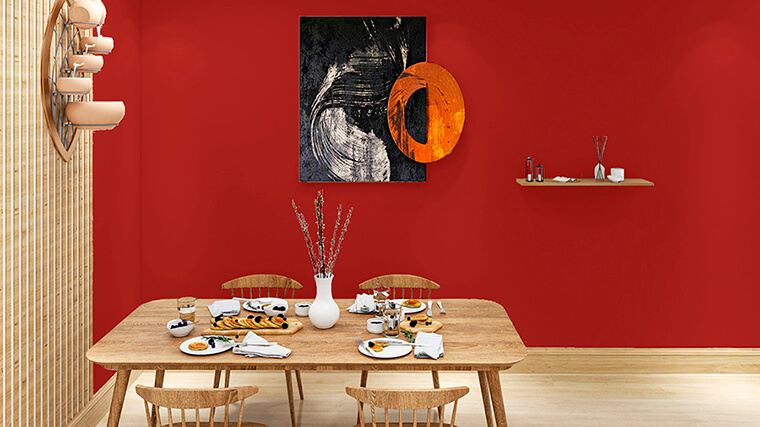 在考慮色彩配置時(shí),若無法接受飽和度太高的紅,非常推薦使用大寶R8855-40D故宮紅,屬于低彩度深紅色系,除了與上述顏色搭配外,更適合放在空間某處作為焦點(diǎn),例如玄關(guān)、電視背景墻..等,讓人不自覺的往此處吸引,在視覺上擁有亮點(diǎn)帶出時(shí)尚摩登感。